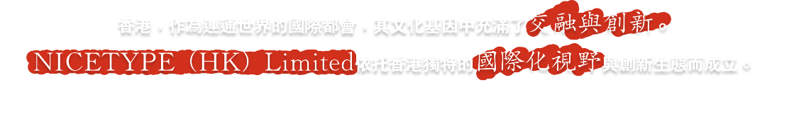 NICETYPE (HK) Limited已形成對中國大陸簡體、港澳台繁體的全面覆蓋,並正積極推進日文等更多語言的本地化字庫開發,實現全場景用字無縫連接。未來,我们將持續拓展多語言市場,推動字體設計創新與文化傳承發展,讓香港的視覺之美,通過文字傳播到世界每個角落。